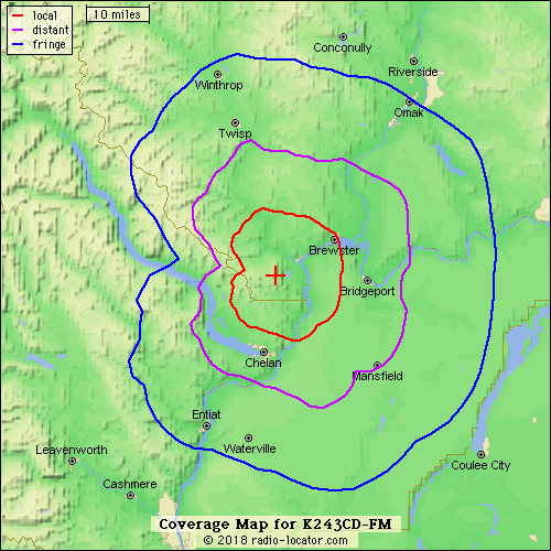 Broadcasting through translator K243CD and serving Brewster, Bridgeport and Okanogan